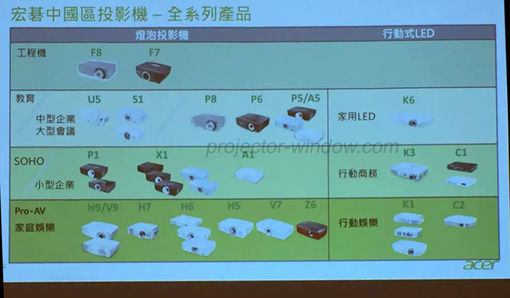 宏碁投影機(jī)產(chǎn)品線從光源方面區(qū)隔為“燈泡機(jī)型”與“LED機(jī)型”,從應(yīng)用端角度來(lái)看,都有不同服務(wù)的應(yīng)用需求。