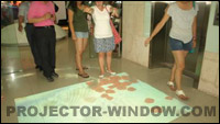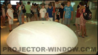 走進雅圖,首先映入眼簾的是一塊地面互動投影,只要你用腳輕輕觸碰,就可以聽到悅耳的水聲,魚兒在不停地游來游去,綻放的玫瑰花在向你微笑,靜躺著的貝殼亦惹人憐愛。今天的雅圖大廳,就像一個充滿歡聲笑語的樂園,“中美學生互動營”的50余名中外師生在這個樂園中體驗產品的魅力和科技的神秘,走進大廳中最引人注目的當屬體積龐大的球幕投影,學生們對球幕上游走的事物,產生濃厚的興趣,并激發他們的好奇心。當然,此次參觀的焦點明星產品是75寸內置電子白板的短焦投影機,由雅圖工作人員現場激情講解產品的獨特性,引發了數名師生躍躍欲試,學生和老師們紛紛體驗產品帶來的樂趣。