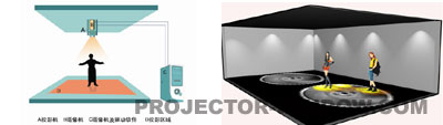 采用先進的計算機視覺技術和雅圖LX660W投影機,營造出一種奇幻動感的交互體驗。當你踏入正上方投影投射在地面上的影像時,你可以直接使用雙腳或雙手與普通投影幕上的虛擬場景進行交互,各種互動效果就會隨著你的腳步產生相應的變幻,讓你進入一種虛實融合、亦真亦幻的奇妙世界。