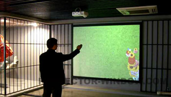 << 系統可以作為觸摸屏使用,可以多指同時觸摸,互不干擾,對于大型互動地點(大型互動墻、互動桌面)效果更為明顯。