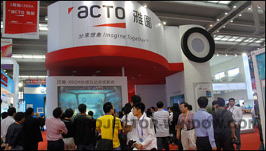 在雅圖微投演示區(qū),你可以看到在2011世界大學(xué)生運(yùn)動會上參與大運(yùn)新媒體體驗(yàn)活動的雅圖投影小明星S1+。這個小明星不僅具有WIFI功能,采用Windows