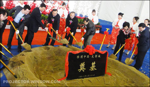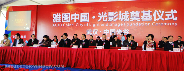 [投影之窗現場報道] 2012年2月28日,雅圖中國·光影城奠基儀式在湖北武漢光谷隆重舉行。項目總投資19.9億元。武漢市市長唐良智、工信部司長肖華等地方、部委領導,雅圖文化科技集團董事長謝敬,來自美國、歐洲、日本、韓國等雅圖全球合作伙伴、湖北省相關單位、雅圖公司高層、員工及新聞媒體記者等五百余人參加了開工典禮及奠基儀式,現場場面宏大。雅圖專門設立科技成果展廳,數字視頻系統方案;全線(教育、商務、工程)投影機(激光、超短焦、10000流明等領先規格)及影院產品;悉數亮相,全景展示了公司強大的研發與生產實力。湖北省、武漢市、工信部相關領導、雅圖董事長謝敬等為雅圖中國·光影城項目奠基培土。