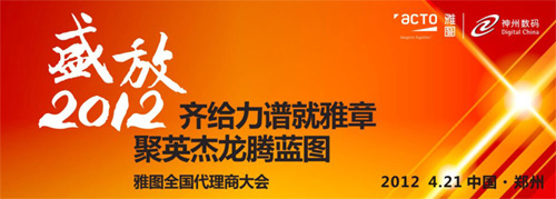 4月21日-23日,深圳雅圖數字視頻技術有限公司(以下簡稱雅圖)將攜手雅圖總代理神州數碼控股有限公司(以下簡稱神州數碼)在鄭州舉行全國代理商大會。雅圖領導、神州數碼領導及全國各大區域代理商、行業精英、行業主流媒體等100余人將匯集于此,以“盛放2012——齊給力譜就雅章