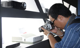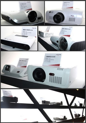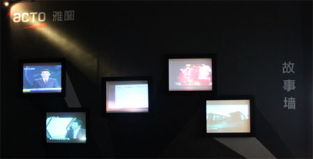 雅圖用不規則的墻內挖孔的產品擺放櫥和有視覺美感的產品陳列形式完美展現雅圖2012年全線的新品投影機,其中包括雅圖LX4000系列工程投影機,S+便攜式投影機、工程系列LX8200/LX4200、短焦LCDLX226ST、LED新光源500流明等投影機產品。