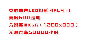 PL411是一款革命性的寬屏高亮LED投影機,憑借600流明高亮度和WXGA高分辨率再次走在了行業的前列。PL411采用了最新技術的LED光源,在亮度和價格中做出了完美平衡,無論在普通燈光照明的會議室還是在拉上窗簾的家居生活中,600lm亮度均可清晰展現畫面,完全能夠滿足用戶的日常需求。同時,該機型采用了WXGA(1280×800)分辨率,與主流PC、DVD的分辨率相同,連接后無需調整畫面,能夠更便捷、更高質量的完美還原畫面效果。此外,該機型的LED光源壽命大大超越了傳統光源,達到50000小時,終生無需更換燈泡,實現了真正的后期維護0成本。在色彩方面,三色LED光源的應用使其色域范圍覆蓋98%Adobe