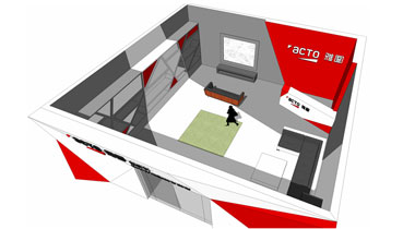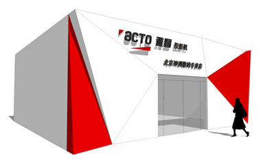 據了解,雅圖終端形象店改版方案由著名專業設計公司提供,設計師以神奇光影、散發光束為基本設計理念,用不規則的幾何圖形為實體構成元素,以現代建筑的藝術手法完美詮釋雅圖的企業理念及產品理念,這使形象店的構造造型及色彩都與雅圖主色調及投影核心元素“光”高度匹配。從上設計圖可以看到,新版形象店高檔獨特、紅白主調時尚清新、整體設計簡約睿智,個性張揚。正大門由兩塊紅色、五塊白色幾何圖形構成,幾何體的任何角度都可以作為光源點,優雅地向四周無限延伸,散發出迷人的藝術美感。其中,兩塊等邊三角形與直角三角形用以活力、優雅、領導力、熱烈著稱的紅色尤為矚目,強有力的紅與純粹的白,極致的藝術形態與獨特的品牌形象,用一種與眾不同的氣質呈現給人們一種震撼的視覺美。
