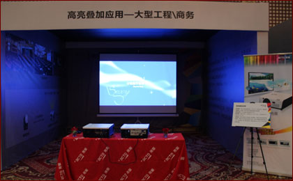 方案實現:將兩臺亮度5000流明的工程機疊加,用鏡頭位移功能將兩畫面重疊,再通過本機自帶的四角較正功能,把兩個畫面毫無重影地重合在一起,同時串聯,輸入相同信號源,便能實現5000+5000=10000流明的高亮畫面。 |
