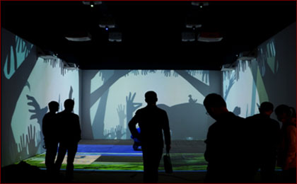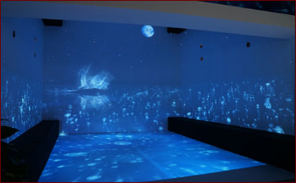 以沉靜式體驗奇幻互動漂流為主題,采用22臺雅圖高清高亮工程投影機LX8000系列,在上下左右前進行五面投影,拼接成一個全方位的100多平的方形折幕影院,營造券包括沉浸式的體驗感;它還是一個互動展區,能夠進行觀眾與影視內容的互動,是影視互動藝術淋漓盡致的體現。