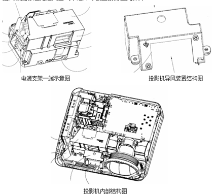據了解《投影機電源組件冷卻系統》專利技術主要的內部組成部件有:電源支架、電源組件、導風件、擋風板。