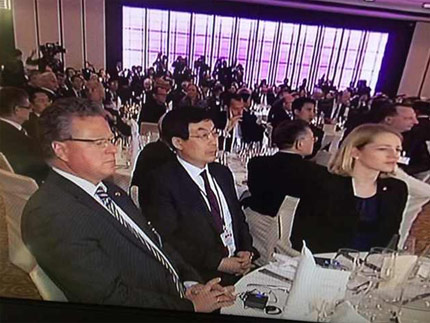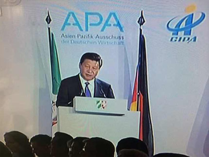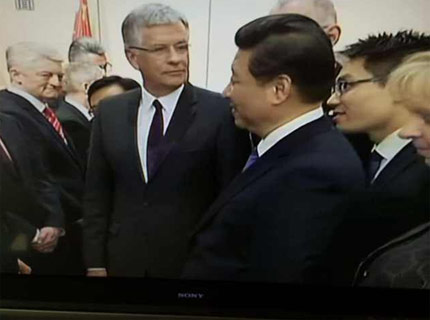 [投影之窗消息] 德國杜塞爾多夫當地時間3月29日晚,中華人民共和國主席習近平先生在德國杜塞爾多夫出席中德工商界晚宴,并親切接見中德企業家代表,勉勵兩國企業抓住機遇,共同做大中德合作。 國主席習近平先生出席中德工商界晚宴