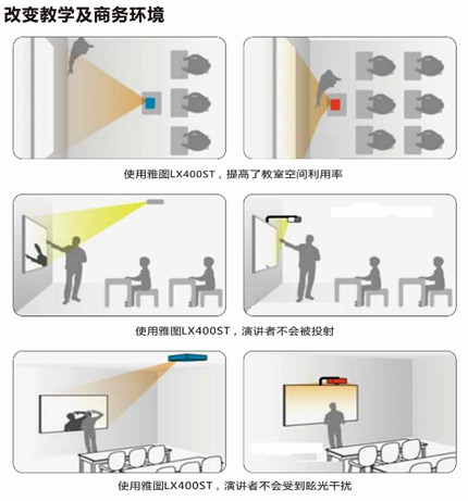 ACTO雅圖E3系列液晶短焦投影機包括6款機型,分別為LX430ST、LX440ST、LX450ST、LX460ST、LW431ST、LW440ST,亮度覆蓋3100-4000流明的范圍,分辨率為XGA及WXGA,其中XGA機型可以再0.75米距離投影80英寸畫面,而WXGA機型則可在0.79米距離投影80英寸畫面。E3系列的最大優勢是具有12000:1高對比度表現,黑白色彩更加分明,畫質更出色,此外,性能方面也更加強勁,穩定性更強,使用成本更低,讓用戶投影無限制。