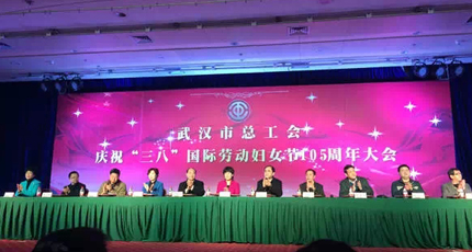 2015年3月6日,武漢市總工會(huì)召開(kāi)慶祝“三八”國(guó)際勞動(dòng)?jì)D女節(jié)105周年暨表彰大會(huì),武漢市委、市政府、市人大、市政協(xié)、市總工會(huì)、市婦聯(lián)領(lǐng)導(dǎo)共同出席了活動(dòng),全市先進(jìn)女職工代表近500人歡聚一堂,共同慶祝自己的節(jié)日,市委常委、宣傳部長(zhǎng)李述永在會(huì)上致辭并作重要講話。武漢雅圖總經(jīng)理周青梅等10位巾幗英雄榮獲武漢市十大“建功立業(yè)女標(biāo)兵”榮譽(yù)稱號(hào),并將被授予“武漢市五一勞動(dòng)獎(jiǎng)?wù)隆薄?br>