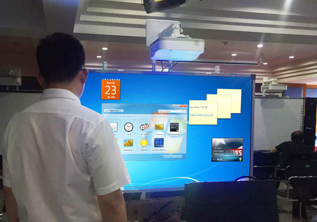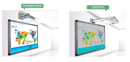 光峰激光教育投影機(jī)AL-UW320依舊是一款超短焦產(chǎn)品,采用反射式超短焦設(shè)計(jì),使得打破投影機(jī)對(duì)距離的限制,0.233的投射比,做到100吋的投影畫面只需50CM。避免了普通投影機(jī)光線刺眼、陰影干擾等問(wèn)題。演講者站在屏幕前,不再受到炫目的投射光干擾而影響講解。