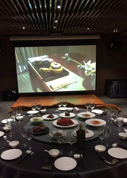 另一臺(tái)光峰激光影院系列APUS-30E設(shè)在二樓VIP室,屏幕掛裝、主機(jī)前置。主要是用于商務(wù)會(huì)談、私人接待,也可作為自家會(huì)客的茶室。
