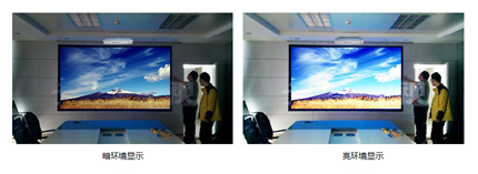 而且,光峰新3LCD超短焦激光投影機產品還具備動態調光功能,可根據畫面的明暗,特別是在顯示較暗圖像時,自動調節激光輸出的亮度和功率,在不影響畫面效果情況下,最亮能達到30%的節能效果,可支持30%~100%的亮度調整。不僅如此,該系列產品還加入了智能感光功能,配備的環境光感應傳感器,可根據環境光的強度,智能調節投影機的亮度,保證最佳的觀看舒適度。