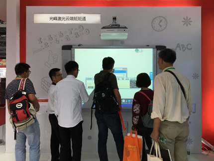而“互聯(lián)網(wǎng)+”、大數(shù)據(jù)、云計(jì)算的發(fā)展,更是推動(dòng)了智慧教育、未來教育的進(jìn)一步實(shí)現(xiàn)。同樣,光峰也緊隨時(shí)代的步伐,展會(huì)現(xiàn)場還展示了激光智慧教室解決方案。它采用的是光峰今年新推出的3LCD激光教育投影機(jī)短焦系列AL-LW210ST,亮度高達(dá)到3300流明,配合90吋電子白板,組成便捷的數(shù)字化教學(xué)互動(dòng)解決方案,輕松實(shí)現(xiàn)授課電腦與顯示屏的互動(dòng),避免老師遮擋學(xué)生視線,避免顯示屏對(duì)老師長時(shí)間近距離的健康傷害。