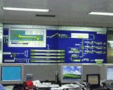 大屏幕顯示及控制系統將各個監控點傳送來的現場信息清晰地顯示在大屏幕上。該大屏幕由五塊100英寸的DNP背投硬屏幕以橫向并放的形式組成一個單邏輯屏(寬10.2 X高1.5米),背后用五臺投影機并排對應放置。在其上的計算機或視頻窗口可以任意的跨屏拖動,大小縮放,而不受影響。該大屏幕顯示系統中的圖像處理器還有一個強大的功能,就是將網絡中的其他計算機的顯示內容調到大屏幕上,用圖像處理器的鍵盤和鼠標即可操作調用這臺計算機的內容。在整個系統運行過程中,將正在監控生產線的計算機上顯示的生產線實時運行圖調到大屏幕上(見圖)其運行也同樣清晰、實時。