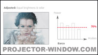 大多數 LED 系統也采用 DMD 調整技術來調整亮度,導致對比度降低,但巴可 LED