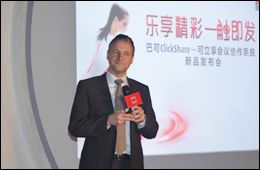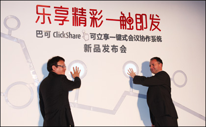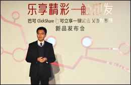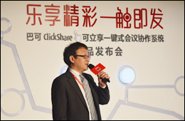 [投影之窗專題報道] 全球影像顯示專家巴可公司今日在北京舉辦“樂享精彩一觸即發‘ClickShare可立享’會議協作系統新品發布會”活動,宣布“ClickShare(中文名:可立享)”一鍵式會議協作系統正式在中國上市。“ClickShare可立享”是巴可公司首款涉足會議室協作的解決方案,以一鍵式操作方式實現演示內容的快速顯示,并允許多方會議內容的同時顯示或相互切換,激發更多參會人員的參與感和互動性。該項技術的推出將改變未來會議辦公的方式,大大提高會議辦公效率和決策制定。