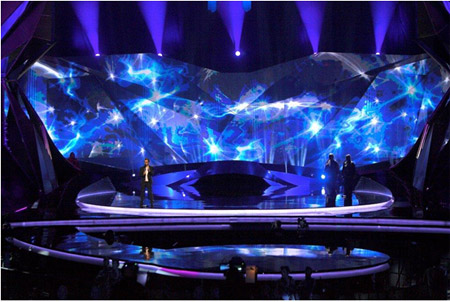 8米)上,營造出美輪美奐的光影效果,場面只能用“震撼”兩字形容。而在往屆賽事,ESC背景屏幕采用的全是LED拼接墻。