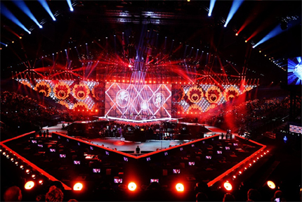 Solutions為大賽部署32臺巴可投影機以及3臺Encore視頻切換器,將以完美的細節將清晰的圖像和視頻投射到立方形的中央舞臺上。