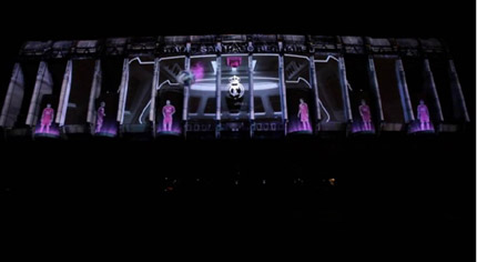 Montajes Audiovisuales為這次活動部署了10臺HDQ-2K40投影機——全球首臺達到4萬流明的高亮度投影機,以期通過先進的投影設(shè)備讓圖像更加栩栩如生。演出最終取得了令人矚目的震撼效果,這是西班牙有史以來規(guī)模最大的投影之一,猶如一股狂潮完完全全地席卷了現(xiàn)場觀眾的心。