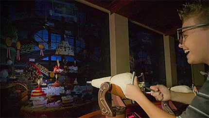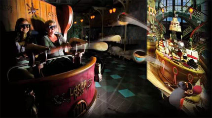 巧克力鼠是一個全媒體3D互動黑暗乘騎游戲,老鼠當然是主角!這個游戲于2011年在夢幻樂園(德國)盛裝登場。主題公園的游客步入一個表面上很平靜的蛋糕店,卻發現這個地方已經被大群調皮貪吃的老鼠所霸占,他們惟有舉槍射擊。這個游戲引發點贊無數,正如一位小伙伴所說:“天了嚕!配備好你的巧克力爆射槍和3D眼鏡,經過8個階段的過關斬將,老鼠能射多少射多少。玩的過程中,那些撲面‘砸’來和物體‘漂浮’的3D效果真的很贊!”