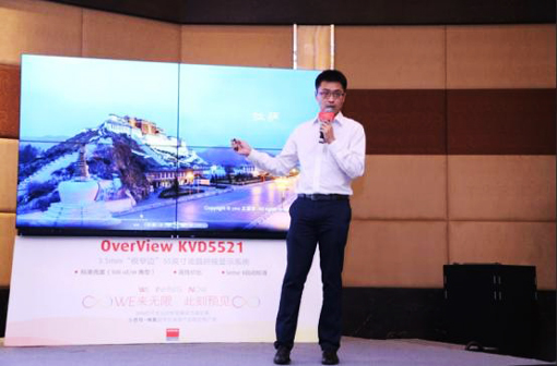 巴可大中華區產品副總監薛峰為來賓講解OverView KVD5521 “極窄邊”55英寸液晶拼接顯示系統