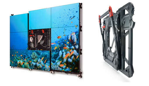 液壓安裝結構,這種機械創新科技利用重力自校準技術,可以確保顯示單元精確對齊且不會損壞敏感的邊緣部位,并且極易安裝和維護。
