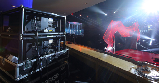 要完成這種大型異型介質(zhì)投影,其要求不僅在于不同色塊分別呈現(xiàn)不同的艷麗色彩,還需要通過影像追蹤大大加強(qiáng)異型結(jié)構(gòu)的立體感。在UDX-4K32的配合下,異型結(jié)構(gòu)隨著節(jié)目及音樂的節(jié)奏變換出不同的色彩,令人印象深刻。