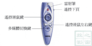 BenQ簡報精靈(紅外線多功能遙控器),針對簡報需求而特殊設計,它的出現,改變了投影機原有的操作習慣,把演講者推向一個自信、灑脫的舞臺。演講者在8米范圍內都能做到遠距離遙控電腦切換PowerPoint簡報頁面!也無需擔心它的兼容性問題——透過USB接口的紅外線接收器,簡報精靈可以與任何投影機搭配使用,甚至無需額外安裝驅動軟件。一支簡報精靈在手,就能掌控全局,為你的專業形象增添無限利落風采。