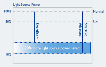 SmartEco advanced智能節(jié)能技術(shù)是明基BenQ獨家推出的特色功能,旨在響應(yīng)各國政府呼吁的節(jié)能減排,呵護地球環(huán)境的號召。它賦予光引擎智慧的大腦,可根據(jù)用戶的使用情況自主的改變投影機的能量消耗,最高可節(jié)省高達90%的能耗。在使用時,用戶只需將投影機調(diào)整至智能節(jié)能模式,藍核光引擎便可根據(jù)輸入信號的明暗程度變頻驅(qū)動激光二極管模組。比如畫面白色信號多一些,激光模組輸出功率將調(diào)大一些,輸出亮度就會高一些;畫面昏暗一些時,激光模組亮度就會相應(yīng)的低一些。這和傳統(tǒng)的節(jié)能模式有了本質(zhì)的區(qū)別,傳統(tǒng)模式燈泡一直工作在穩(wěn)定的檔位,即使調(diào)到節(jié)能模式也只是畫面亮度的整體下降,雖然也能達到減少能源消耗的目的,但是畫質(zhì)也無形中損失了。目前,只有市場上SmartEco這一先進技術(shù)才可以做到在不損畫質(zhì)的前提下實現(xiàn)智能省電。