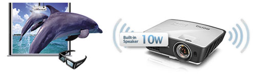 為了讓家庭影院的起步門檻更低,特別是對于那一部分放在茶幾上使用的客廳投影機用戶,W770ST在連接的豐富性及易用性方面做了相應設計,機器標配VGA/HDMI/AV/Audio等多種接口,可滿足各種設備的不同需求,同時接口采用不同色彩標識,避免使用者接錯。考慮到最大程度的方便使用者搭建家庭影院,內置10W喇叭,用戶只需要將HDMI線接入,開機,視頻和音頻就同時可以播放了,大大節省了花在安裝調試上面的時間。