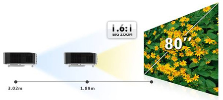 W1400定位于普通家庭環(huán)境使用,在設(shè)計(jì)初始就考慮到了家庭實(shí)際安裝環(huán)境的一些特點(diǎn),盡量用投影機(jī)自帶的功能來避免對(duì)家居已有的裝修環(huán)境造成影響。W1400鏡頭不僅具有1.6倍的大光學(xué)變焦范圍,可在1.89-3.02米巨大的彈性范圍內(nèi)投滿80寸的畫面,這樣無論是緊湊型影音室還是寬大的豪宅客廳都可以適應(yīng)。為了避免吊裝后因家庭裝修的水晶大燈,吊飾等遮擋鏡頭,W1400還把高端機(jī)才有的鏡頭位移功能加入其中,通過調(diào)節(jié)旋鈕螺絲,可以實(shí)現(xiàn)鏡頭110%-130%±5%的垂直鏡頭移動(dòng),另家庭安裝更加便捷。