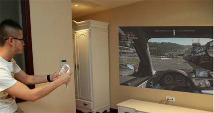 不必為打得太糗而掛不住面子,也不用為過關斬將而耗費太多的金錢,遠比游戲廳更精彩、更身臨其境的大屏享受,現在只需配備一臺明基W1500無線家用投影機,就可以在家輕松擁有了。除具備強大的無線投影功能以外,明基W1500還能夠提供高達2200流明的高亮度輸出,并且同時具備10000:1的超高對比度,結合內建的6倍速RGB全彩色輪,能夠將游戲畫面完美無缺地展現在超大屏幕上,它甚至支持多種格式的3D訊號,因此就算是恢宏巨制、栩栩如生的最新款3D游戲,你也可以在家無限暢玩!