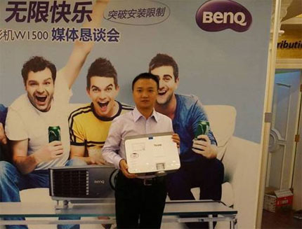 繼明基家用機(jī)高級(jí)產(chǎn)品經(jīng)理劉茂瑞精彩講解后,融影(上海)實(shí)業(yè)有限公司產(chǎn)品總監(jiān)王翊則透過(guò)現(xiàn)場(chǎng)親身演示,為大家充分展現(xiàn)了明基W1500家用機(jī)強(qiáng)大的無(wú)線投影功能。演示中,王翊先后將明基W1500與現(xiàn)場(chǎng)筆記本電腦、藍(lán)光DVD播放機(jī)、數(shù)碼攝像機(jī)、數(shù)碼相機(jī)及智能手機(jī)等多種數(shù)碼影音設(shè)備取得無(wú)線連接,而經(jīng)由W1500所投射出的高清視頻及影片,不但色彩表現(xiàn)絢麗逼真、影像層次豐富飽滿,而且動(dòng)態(tài)演繹過(guò)程也極為流暢,其無(wú)線投影效果足已同有線傳輸相媲美,即便有延遲肉眼也無(wú)法分辨。