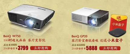 參與214情人節特惠的兩款精品投影機,分別為明基GP20超便攜微型LED短焦家用投影機,與爆款熱銷的明基高清藍光3D普及型家用投影機W750。其中GP20情人節特價5888元,同時加贈最新小米盒子高清智能網絡機頂盒;原價4999元的明基W750也為214傾情獻禮,限時特價3799元,性價比再次爆表。你還打算冒著瑟瑟寒風上影院排長隊嗎?家才是最溫暖的港灣!而情人節里的家庭影院無疑更好看!GP20搶購鏈接:http://t.cn/8FpeQZA