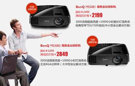 有如爆款熱銷、全5星好評的明基MS3081與明基MX3082兩款產品,活動特價分別為2199和2849元,一度被譽為中小企業首選商務會議投影機。其中,MS3081采用SVGA標準分辨率,提供3000流明超高亮度和7000:1超高對比度,具備高達10000小時超長燈泡使用壽命,不僅畫質清晰銳利,支持3D投影,長期使用更經濟更環保。而明基MX3082具XGA標準分辨率,為理想的中型會議解決方案,性價比尤為突出,而且這2款熱賣機型除參與滿減以外,還額外參與返京券活動,小編提示:京券可是全場無條件通用的哦!