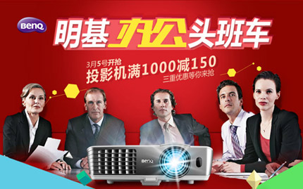明基投影機“職場頭班車”特別促銷活動于2014年3月5日9:00全面啟動,至3月12日凌晨截止。在此期間明基多款投影機均史無前例的下單每滿1000則減150,傾情回饋消費者,更讓人心動的好消息是,還有多款熱賣型號贈京券。