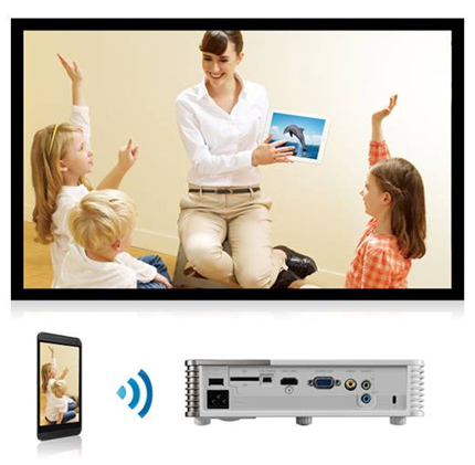 在課堂互動游戲中,另一位助理老師用手機給孩子們錄了一些節目。而課程結束后,只見老師在手機上輕點幾下,孩子們玩耍時的照片和視頻,立刻就投在了大熒幕上。原來,明基微投影機GP20還支持無線投影,真是太神奇了。 |