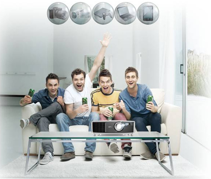對(duì)辛苦工作一天的你來(lái)說(shuō),還有什么比早些趕回家、舒舒服服躺在沙發(fā)上、看一場(chǎng)無(wú)比精彩的大片更讓人愜意的事呢。而家里電視機(jī)尺寸不夠大,無(wú)論怎么看都不過(guò)癮。至于即將來(lái)臨的世界杯足球賽,更是四年一度翹首以盼的盛典,值得你用最好的裝備來(lái)欣賞!是時(shí)候買一臺(tái)全高清家用投影機(jī)了,瞬間在客廳投射出120英寸以上超大畫(huà)面,不但看影片巨爽無(wú)比,看球賽更如真人般大小,早買早享受。