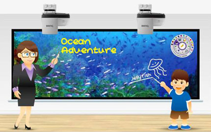 隨著投影機(jī)技術(shù)的進(jìn)步,短焦及互動(dòng)教學(xué)都不是新鮮概念了,用戶(hù)期望從短焦到超短焦,從80寸到100寸到明基即將展示的300寸超大互動(dòng)畫(huà)面。據(jù)悉,明基此次將會(huì)推出由超短焦新品MW853UST組建的雙機(jī)雙畫(huà)面無(wú)塵黑板互動(dòng)方案,將會(huì)利用明基最新的PointWrite互動(dòng)技術(shù)拼接出一個(gè)4米*1.3米的巨大觸控畫(huà)面,實(shí)現(xiàn)多人同時(shí)的互動(dòng)書(shū)寫(xiě)。使用者可以在巨大的黑板任何一個(gè)地方觸控,可以從畫(huà)面的一端連續(xù)的書(shū)寫(xiě)至另一端,途中筆跡流暢而不斷筆;在不使用投影機(jī)時(shí),它又變成了一個(gè)普通的無(wú)塵黑板,使用水性書(shū)寫(xiě)筆在表面板書(shū),用配套的粉筆擦輕輕一抹便可了無(wú)痕跡,這個(gè)方案在實(shí)際教室安裝時(shí)可以直接取代傳統(tǒng)粉塵式黑板,可滿(mǎn)足普通教室甚至階梯大教室的觀(guān)看需求。