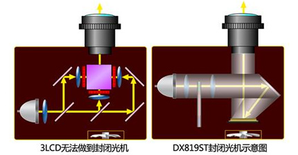其三,采用全密封光機設計。傳統的3LCD投影機出于散熱的考量,無法做到光機的絕對密封,但明基采用DLP技術更簡潔的光機結構使得封閉光機成為可能。DX819ST光機采用金屬澆筑工藝,熱變形小且可以耐受很高的工作溫度,可允許長時間無故障運行。燈泡發出的光經過色輪濾色后,將進入全封閉的光機中運行,即使有微量濾網沒有濾掉的灰塵也毫無壓力,絕對不會發生因灰塵在成像芯片上附著出現的點狀燒蝕或者偏色現象。 |
