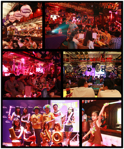 在家看球孤單,直飛巴西太遠(yuǎn)。還有什么比球迷相聚共同觀賞世界杯更過癮?7月1日晚,沈陽中街KO蔻音樂酒吧,瞬間被喜愛足球的遼哥遼妹擠爆了!有史以來沈陽最大足球狂歡夜Party。身為活動(dòng)主辦方,素以投影機(jī)產(chǎn)品享譽(yù)世界的明基BenQ,不但為球迷觀賽精心準(zhǔn)備一系列超大屏幕家用投影機(jī),更提供免費(fèi)暢飲、歡享美食、足球?qū)氊悷嵛柚d及一系列精彩互動(dòng)有獎(jiǎng)活動(dòng),誓讓球迷度過最嗨的夜晚!