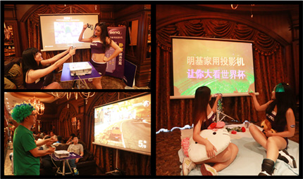 不論新知或舊友,還是素未謀面者,在這熱鬧喧天的足球大趴上,都不由自主拋開了彼此間的陌生感,互相碰杯淋漓暢飲,足球是此刻最好的語言。而在KO蔻吧不同區(qū)域,明基BenQ還精心設(shè)立多個(gè)家用投影機(jī)的自由體驗(yàn)區(qū)。明基GP20微型投影機(jī),吸引了不少球迷的注意力,這臺(tái)投影機(jī)極為精致小巧,完全不象普通投影機(jī)那樣既笨又重,但它所投射出的大尺寸畫面卻相當(dāng)清晰細(xì)膩,亮度也絲毫不差。
