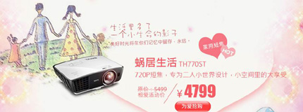 無論追夢之旅有多難、現實生活多么骨感,只要一路有TA不離不棄的陪伴,這小小的世界就充滿了陽光!裝備先進短焦技術的明基TH770ST家用投影機,可在任何狹小空間里,僅用短短距離就投出100英寸以上超大熒幕720P高清畫面。當你還沒有能力換一套更大的房子,適合蝸居的TH770ST是理想之選。原價5499元,七夕為愛特價4799元。