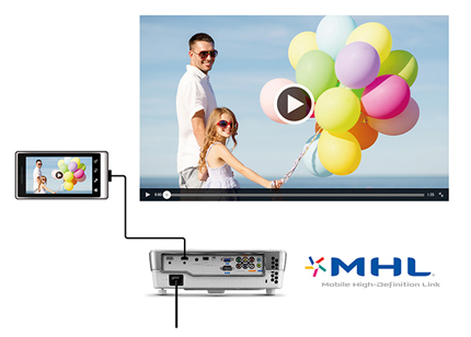 明基W1070+支持MHL移動高清連接,因而可以透過MHL線纜或第三方MHL適配器,輕松投射來自任意MHL智能設備的數字影音內容。這不但能夠將移動娛樂擴展到超大的屏幕上(即插即投),更有助于和家人或朋友一同分享你的快樂。另外,你也可以瀏覽網頁、觀看視頻、玩玩游戲,而無需特別打開電腦,你甚至還可以使用自己的移動設備來實現遙控播放功能。