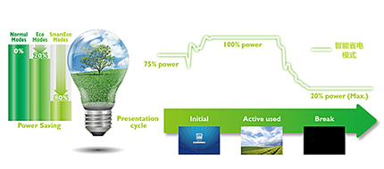 Eco模式后,投影機可根據應用所需自行調整燈泡功率,在確保對比度與亮度最佳化的同時,平均功耗較模式減少4成以上。MX806ST還為用戶提供Eco