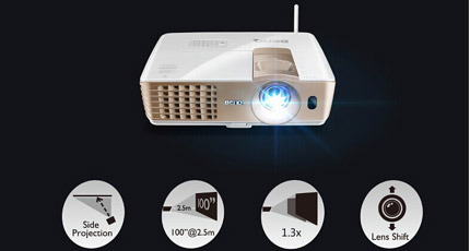 Keystone側(cè)面投影功能,專為空間有限者貼心設(shè)計,除了擺在屏幕中央外,也可擺放在邊桌甚至墻角,投出畫面一樣完美;它還裝備1.3X變焦鏡頭,可彈性縮放畫面大小,鏡頭位移功能也提升畫面調(diào)整靈活性,另有智能設(shè)置向?qū)c智能雙模菜單,一目了然,讓你輕松上手。