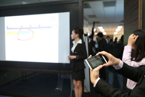更讓人印象深刻的是,明基還為SH915系列商用投影機特別開發Qcast無線智慧控制應用,令商務客戶可輕松打造出無線多媒體會議室。事實上,伴隨智能手機、平板電腦等移動終端設備快速普及,越來越多用戶開始充分利用它們的價值。然而市場上現有商用投影機產品仍無法與智能移動設備很好適配,尤其在鏡像顯示與投影控制方面的用戶體驗并不能夠讓人滿意。明基Qcast無線智慧控制應用的推出,可讓智能移動終端與商用投影機快速建立無線連接,并將移動終端上的內容全屏鏡像投射于大屏幕上。